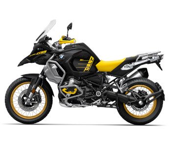 Ikona s legendárním vzhledem: R 1250 GS Adventure ve verzi „Edition 40 Years GS“ s kontrastními žlutými páskami a chrániči rukou, stejně jako ráfky, řídítka a brzdové třmeny ve zlaté.