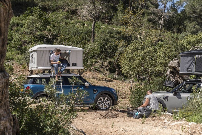 Montáž mobilního přístřešku usnadňují standardně nabízené střešní ližiny nového MINI Countryman. Ty dovolují použít pro tento model specifické střešní nosiče - dostupné jako Originální příslušenství MINI.