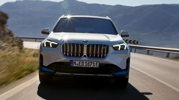 Výrazná a velká, téměř hranatá maska ve tvaru ledvinek s volitelnými modrými ozdobnými prvky a nízké Adaptivní LED světlomety přecházející daleko do boků dodávají novému BMW iX1 dynamický výraz s elektrifikovaným nádechem.