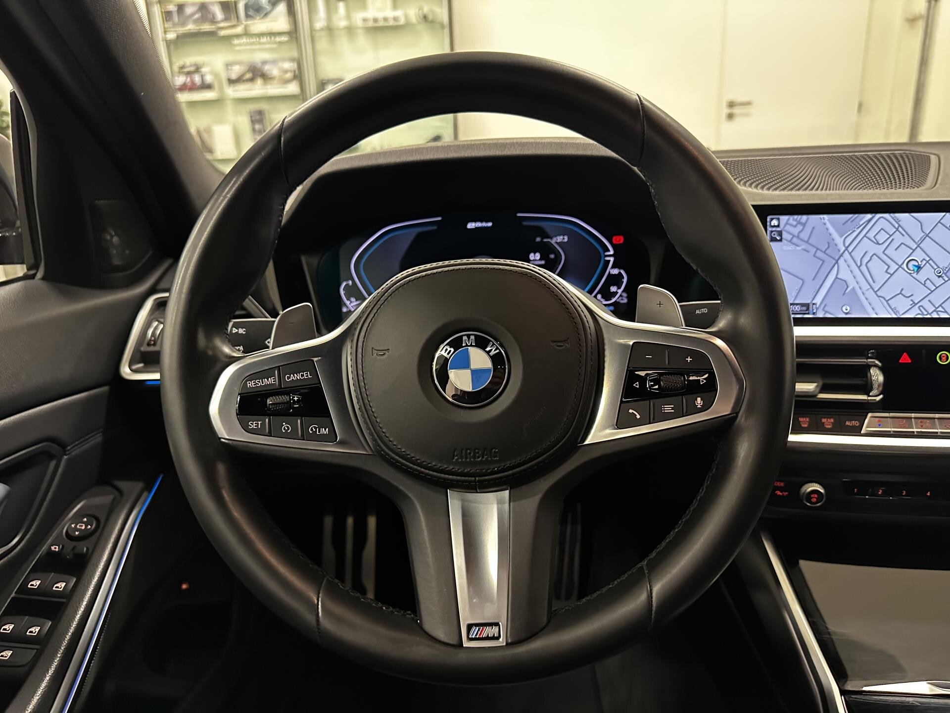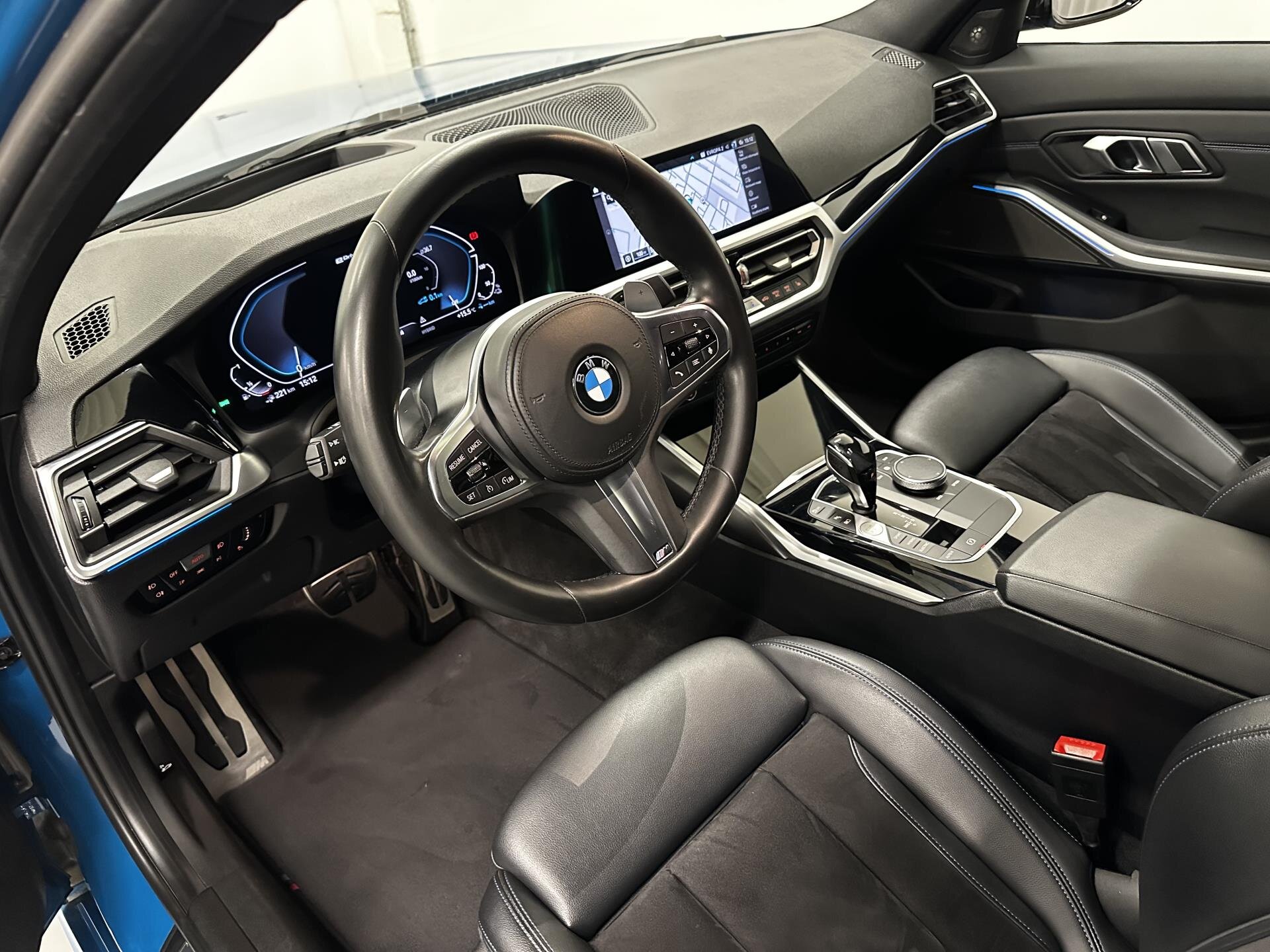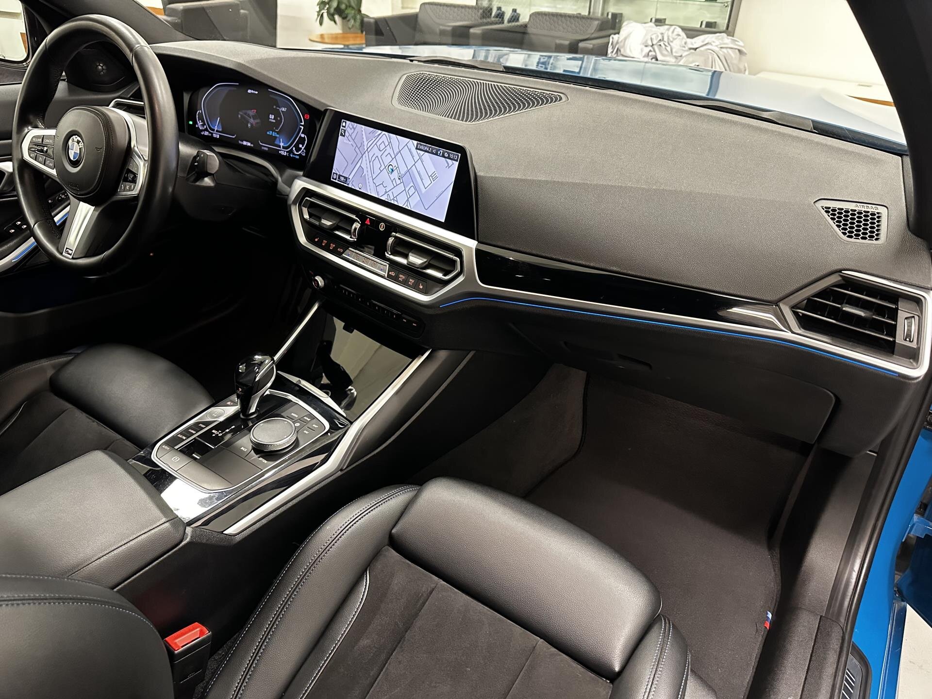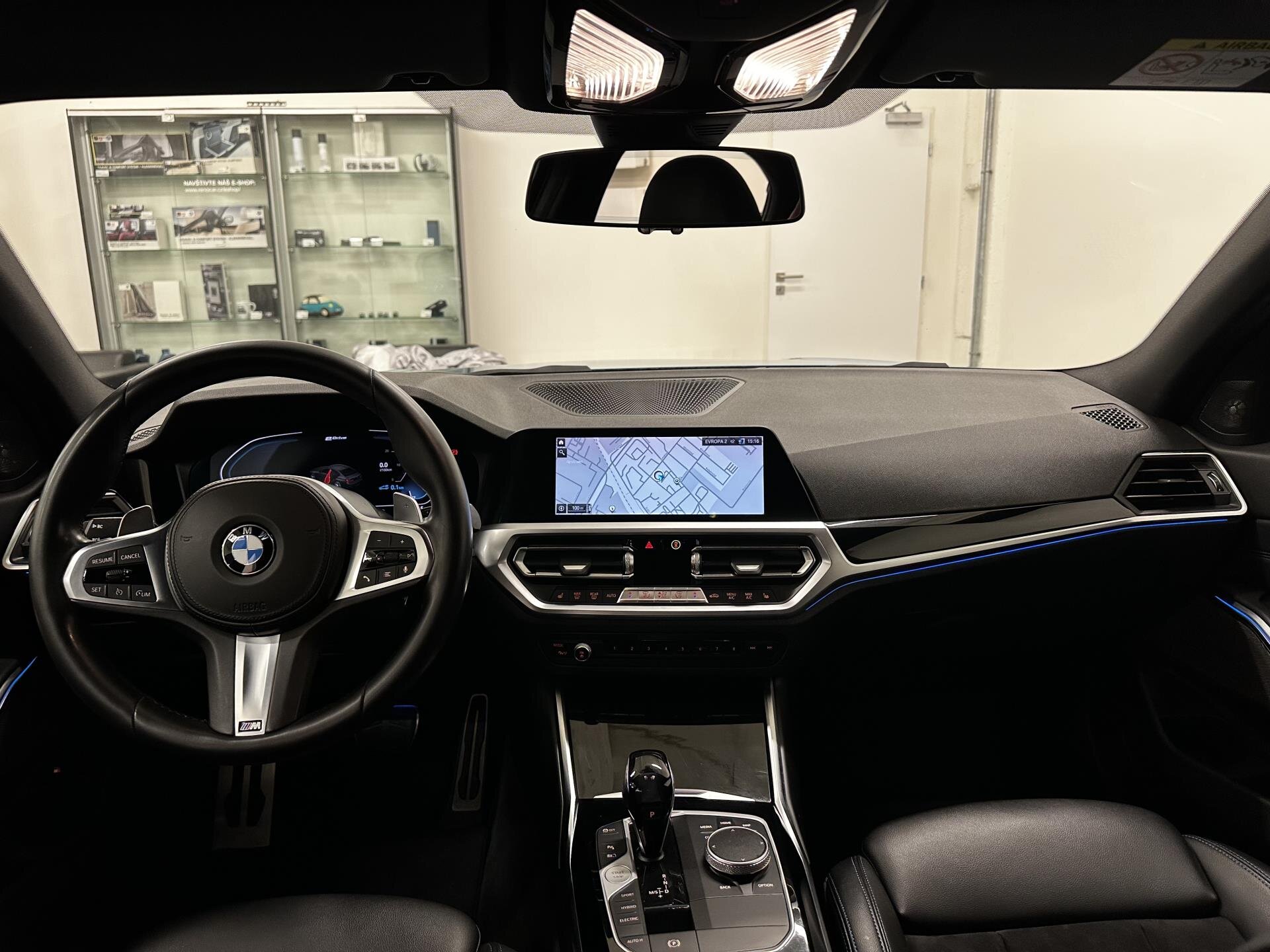 BMW 330e eDrive v provedení M Sport s plug-in hybridním pohonem a sportovní automatickou převodovkou. Vůz je vybaven M aerodynamickým paketem, M sportovními brzdami, 19" M koly, M zadním spoilerem, Shadow Line paketem a M koženým volantem. Sportovní sedadla s bederní opěrkou a vyhříváním, interiérové lišty Piano Black, antracitový strop a ambientní osvětlení. Komfortní přístup bez klíče, automatická klimatizace a paket odkládacích prostor. Technologie zahrnují BMW Live Cockpit Professional s digitálním přístrojovým štítem, head-up displej, WLAN hotspot, bezdrátové nabíjení telefonu, DAB rádio a prémiový audiosystém Harman/Kardon. Světelnou techniku zajišťují BMW Laserlight světlomety a asistent dálkových světel. Bezpečnost a asistence: Driving Assistant, Active Guard Plus, parkovací asistent, tempomat s brzdnou funkcí, parkovací senzory a automaticky stmívatelná zrcátka. BMW Premium Selection 2 roky v ceně vozu. Možnost protiúčtu, pojištění, protiúčtu za stávající vůz.