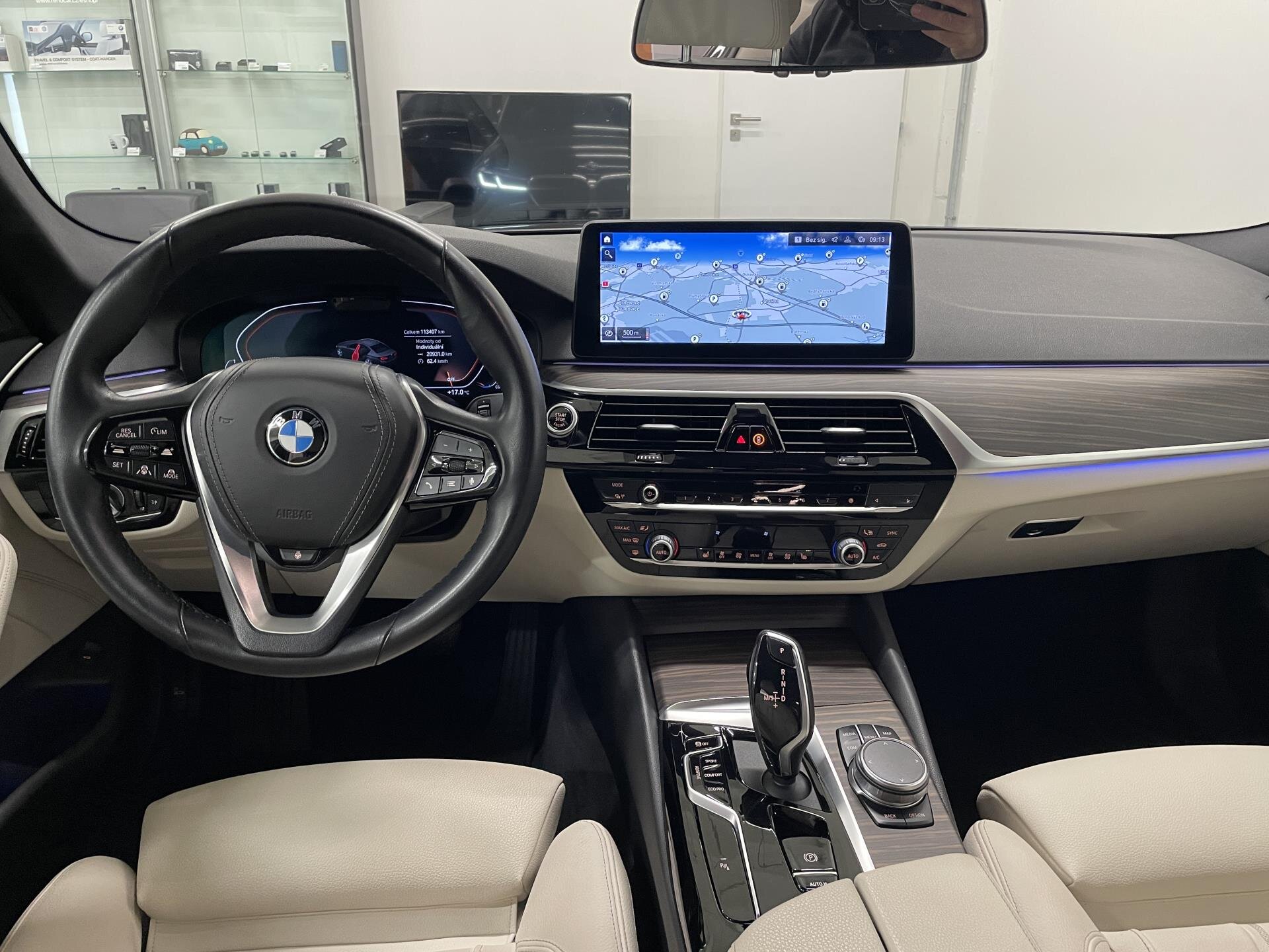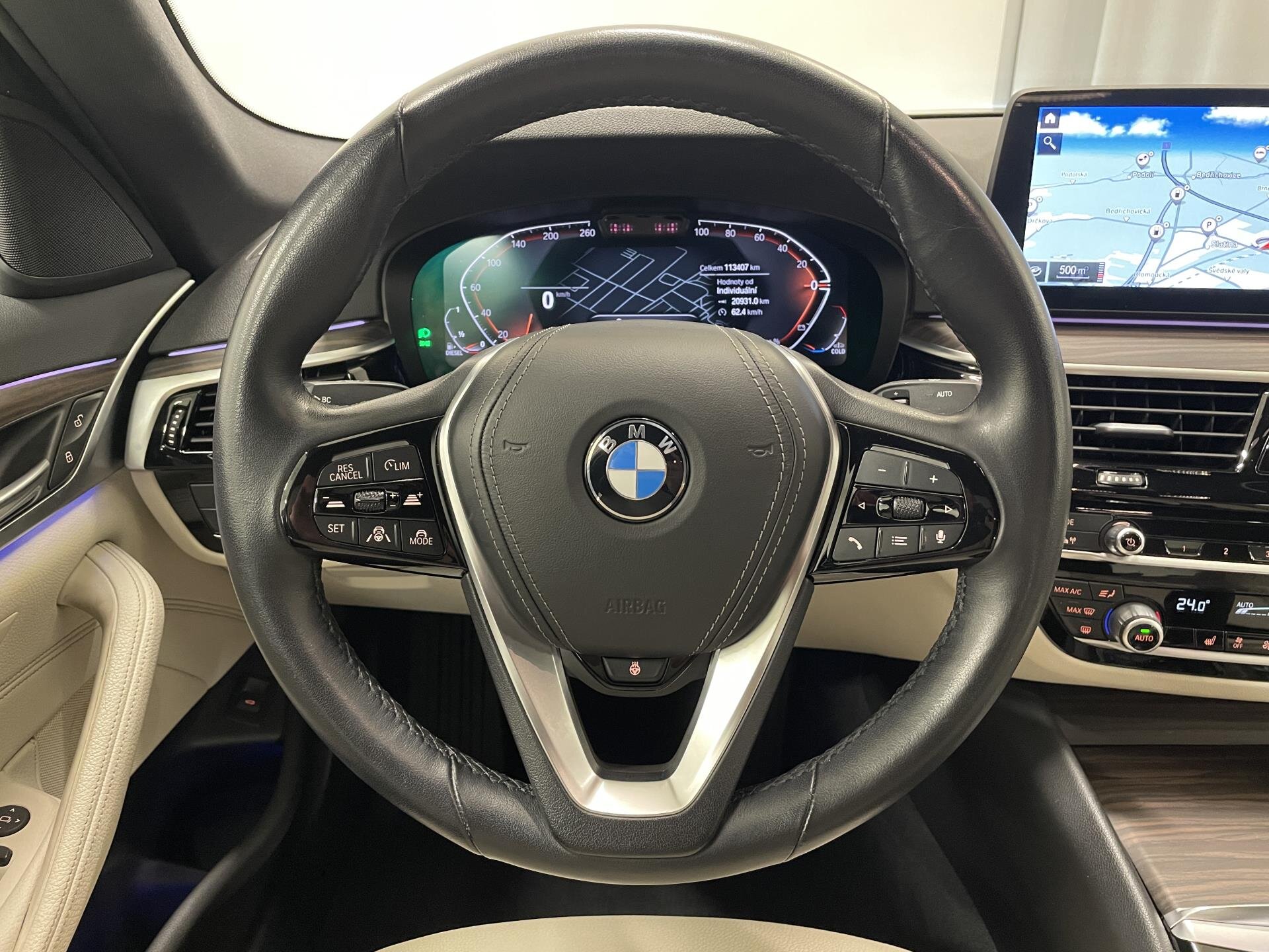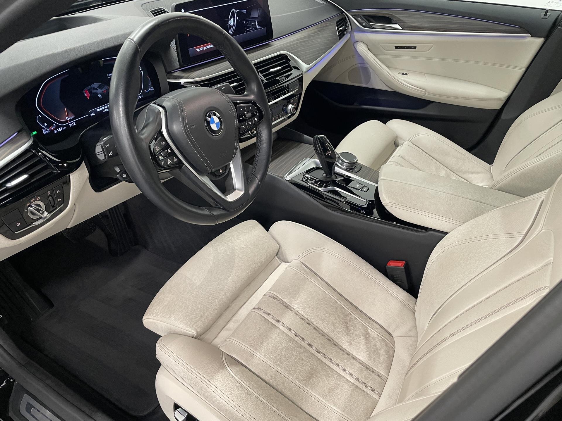 BMW 530d s adaptivním podvozkem, automatickou převodovkou a provedení s leštěnými hliníkovými prvky. Výbava zahrnuje komfortní sedadla s pamětí, vyhřívání volantu i předních a zadních sedadel, dřevěné dekory Fineline Cove, Ambient Air, rozšířený paket zrcátek, head-up displej, Live Cockpit Professional a bezdrátové nabíjení. Nezávislé topení, protisluneční rolety vzadu, průchozí systém a lyžařský vak zvyšují praktičnost. Adaptivní LED světlomety, asistent dálkových světel, Driving Assistant Professional, Active Guard a parkovací asistent zajišťují špičkovou bezpečnost. Komfortní přístup, elektrické víko zavazadelníku a BMW klíč s displejem doplňují uživatelskou výbavu. Hifi systém, DAB a vnitřní ambientní osvětlení podtrhují celkový komfort. Součástí vozu 2 roky záruka Premium Selection. Možnost financování, pojištění, protiúčtu za stávající vozidlo.