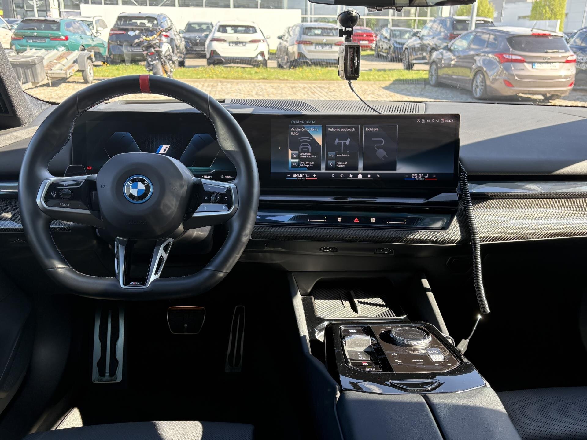 VOZIDLO V PŘÍPRAVĚ: BMW i5 M60 s adaptivním podvozkem M Professional a paketem M Sport Pro (M brzdy, M aerodynamika, Shadow Line, zadní spoiler). Panoramatická střecha, komfortní přístup, automatické víko kufru a paket Iconic Glow. Elektricky nastavitelná sedadla s pamětí, ventilací a vyhříváním vpředu i vzadu, 4zónová klimatizace a bederní opěrky. Adaptivní LED světlomety, Driving Assistant Professional, Parking Assistant Professional a interiérová kamera. BMW Live Cockpit Professional, Harman Kardon audio, bezdrátové nabíjení, eSIM, WLAN funkce a ConnectedDrive služby, akustická ochrana chodců a IconicSounds Electric. BMW záruka do 11/2027. Možnost financování, pojištění, protiúčtu za stávající vozidlo.