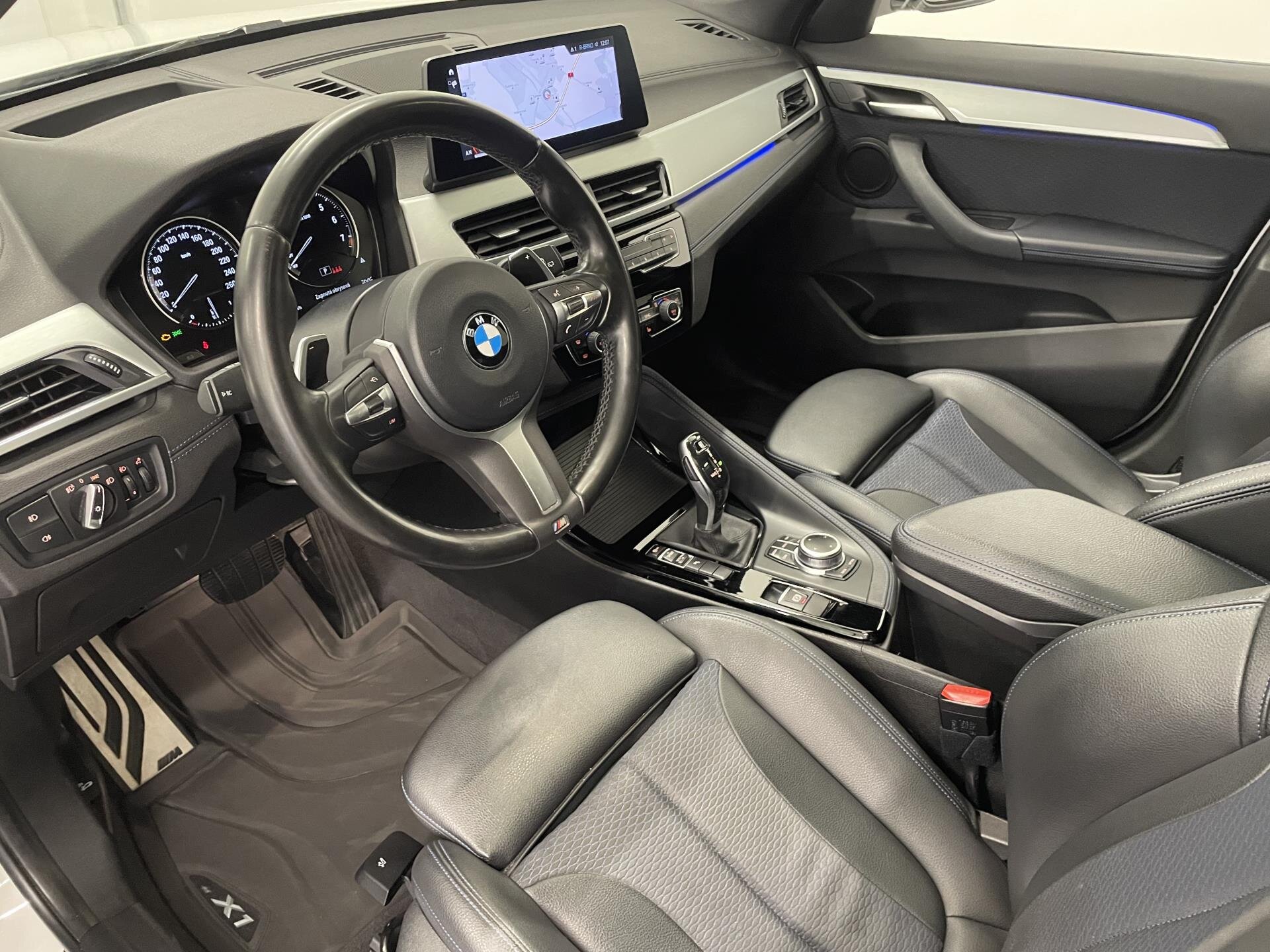 BMW X1 20i sDrive ve verzi M Sport: M sportovní paket (M aerodynamika, M podvozek, M volant, M kola 816M, Shadow Line), sportovní automatická převodovka DCT, Performance Control, sportovní sedadla s vyhříváním a bederní opěrkou, multifunkční volant, látkový interiér, panoramatická střecha, elektrické víko kufru, komfortní přístup, couvací kamera a parkovací senzory, LED světlomety + mlhovky, automatická klimatizace, tempomat s brzdnou funkcí, head-up displej, Navigation Plus, DAB tuner, Hi-Fi audio, ConnectedDrive služby včetně RTTI, vzdálených funkcí a nouzového volání, Active Guard, tónovaná skla, ambientní osvětlení, hliníkové dekory, antracitová stropnice. Záruka 12 měsíců v ceně vozu. Možnost financování, pojištění, protiúčtu za stávající vozidlo.