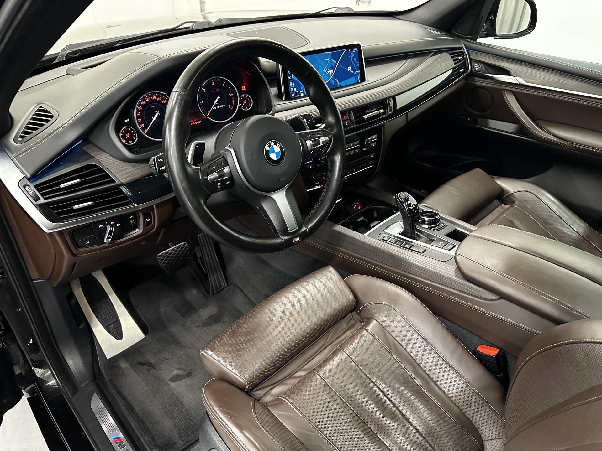 BMW X5 50d s M Sport paketem, sportovní automatickou převodovkou a adaptivním M podvozkem. M kola dvojpaprsek 468, M aerodynamika, Shadow Line doplňky a antracitový strop. Panoramatická střecha, tažné zařízení a tónovaná skla. Komfortní klimatizovaná sedadla s pamětí, vyhřívání sedadel i volantu, měkké dovírání dveří a bezklíčový přístup. Navigační systém Professional s head-up displejem, digitální přístrojový štít a DAB+. Pokročilé asistenty Driving Assistant Plus, Surround View, parkovací kamery a BMW Night Vision s rozpoznáním osob. Hi-Fi audio, bezdrátové nabíjení telefonu, WLAN hotspot a online služby ConnectedDrive. Platná záruka DEFEND 2029/200tis km. Možnost financování, pojištění, protiúčtu za stávající vozidlo.
