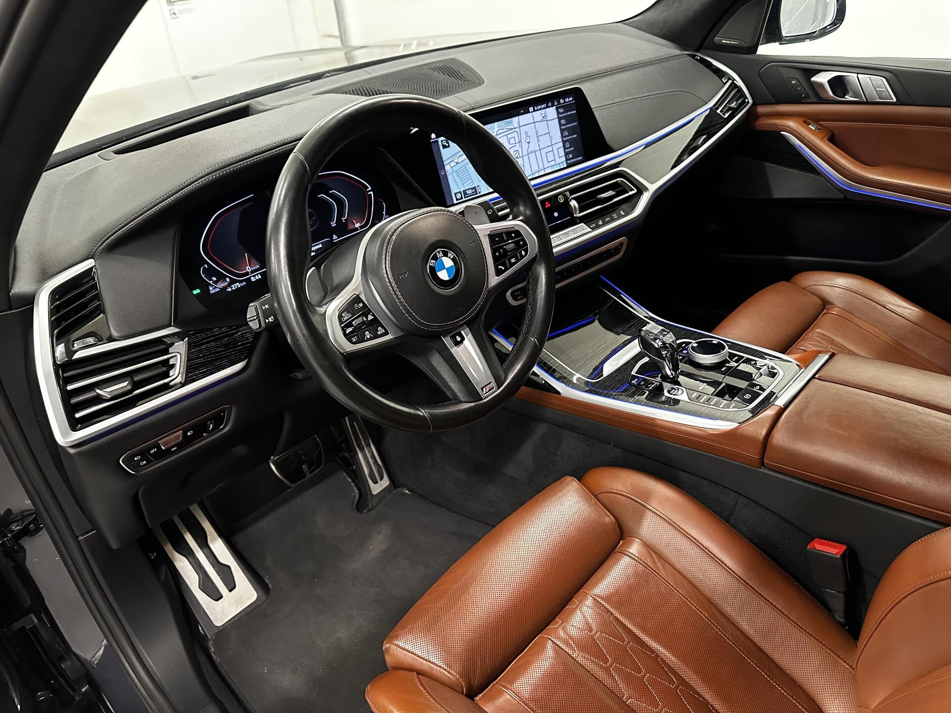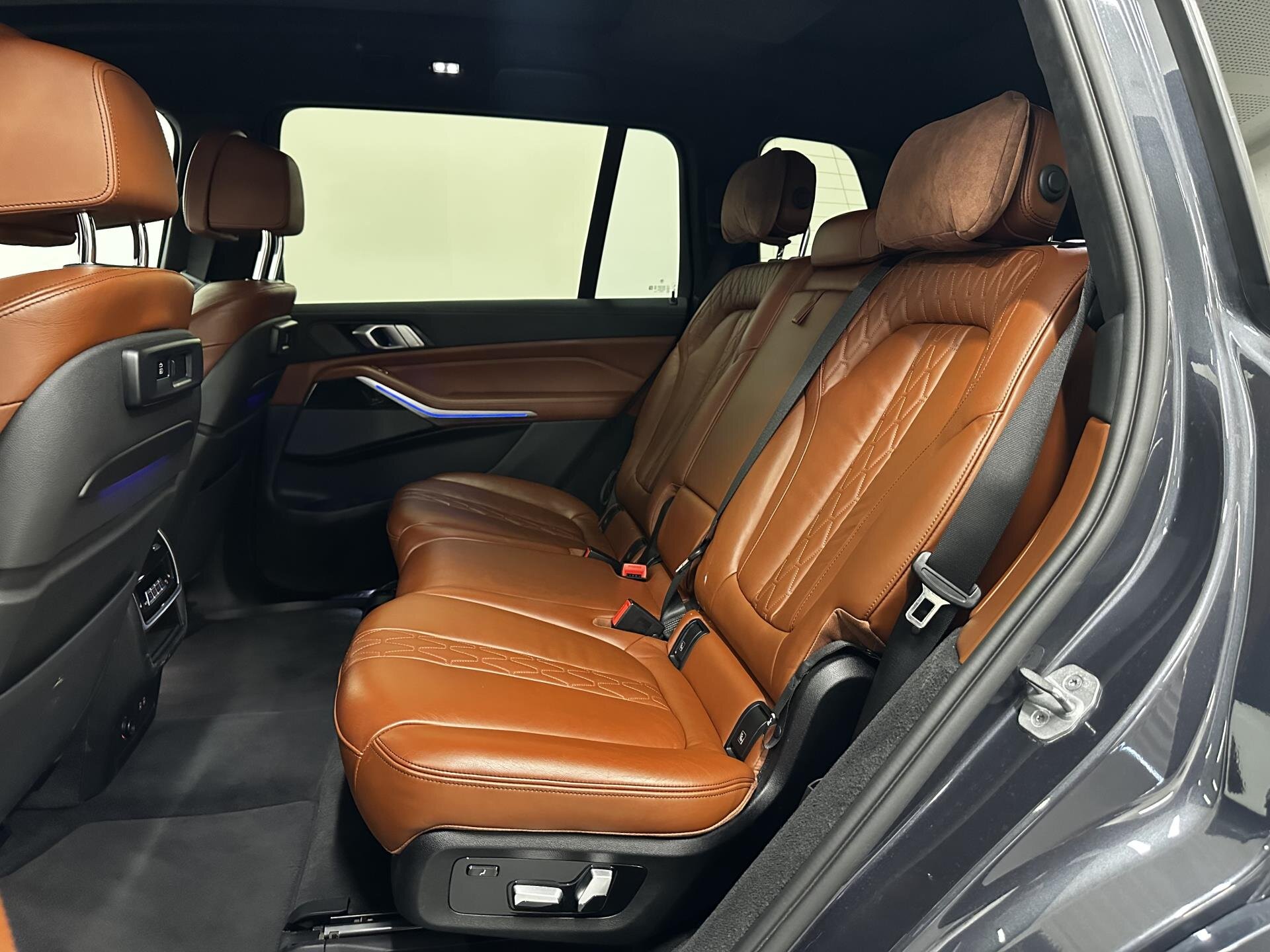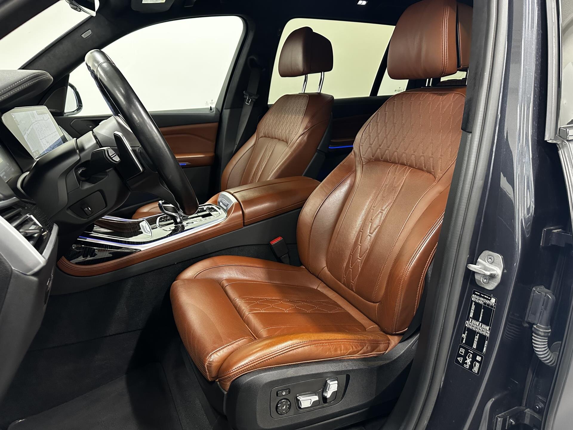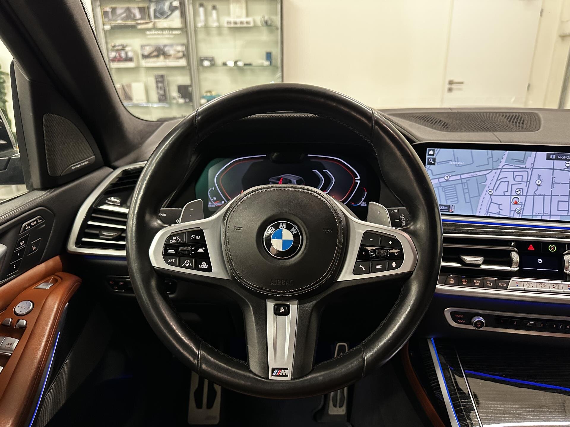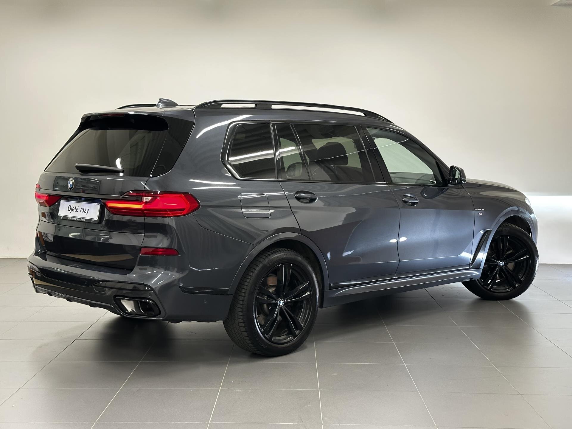 BMW X7 xDrive40d M Sport s bohatou výbavou: M sportovní paket, M aerodynamický paket, M sportovní výfuk a M sportovní brzdy, 21" M kola, sportovní automatická převodovka a integrální aktivní řízení. Komfortní přístup, měkké automatické dovírání dveří, tažné zařízení, hliníkové střešní lišty, tónovaná skla a BMW Display Key. Interiér nabízí komfortní sedadla s pamětí, ventilací a vyhříváním vpředu i vzadu, vyhřívací komfortní paket, temperované držáky nápojů, skleněné prvky CraftedClarity, dekor Fineline dřevo, ambientní osvětlení a strop Alcantara. Nechybí panoramatické uspořádání zavazadlového prostoru, Travel & Comfort systém a paket zavazadlového prostoru. Technologie zahrnují BMW Live Cockpit Professional s head-up displejem, ovládání gesty, WLAN hotspot, bezdrátové nabíjení telefonu, DAB rádio a prémiový sound systém Harman/Kardon. Asistenční systémy: Driving Assistant Professional, Active Guard Plus, parkovací asistent Plus, BMW Drive Recorder, laserové světlomety BMW Laserlight a asistent dálkových světel. Možnost financování, pojištění, protiúčtu za stávající vůz.