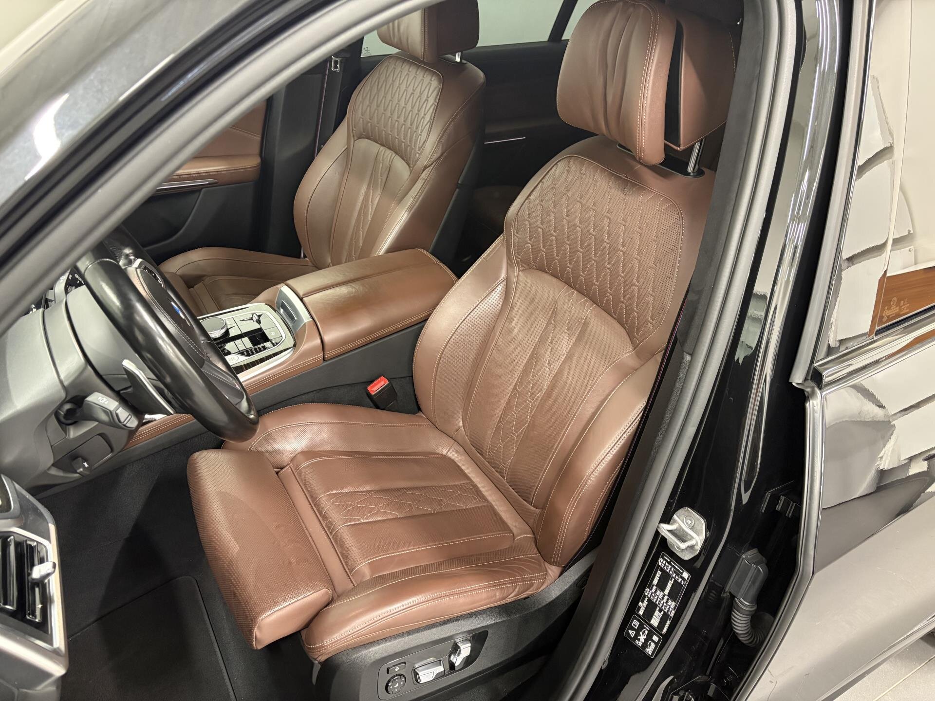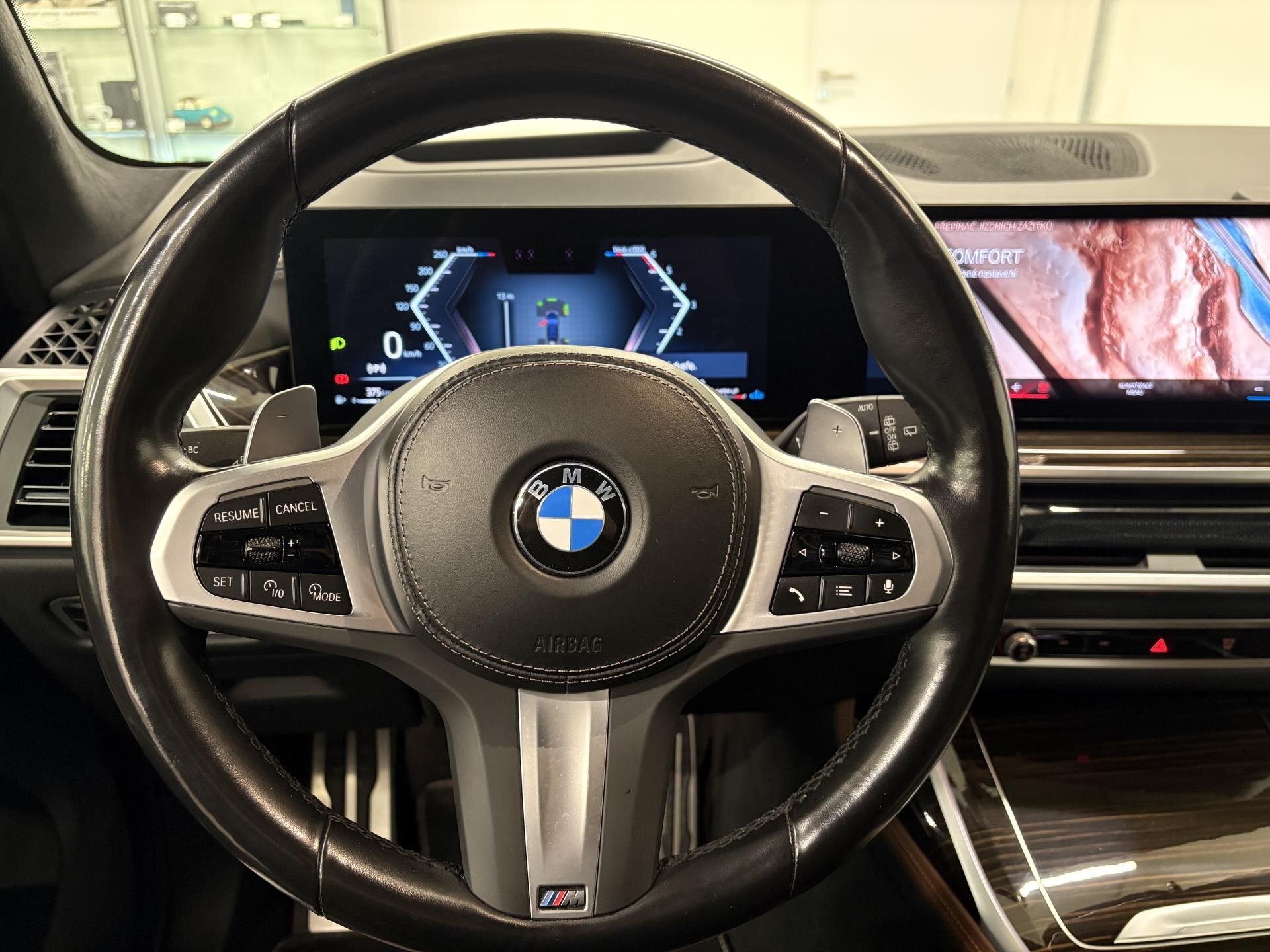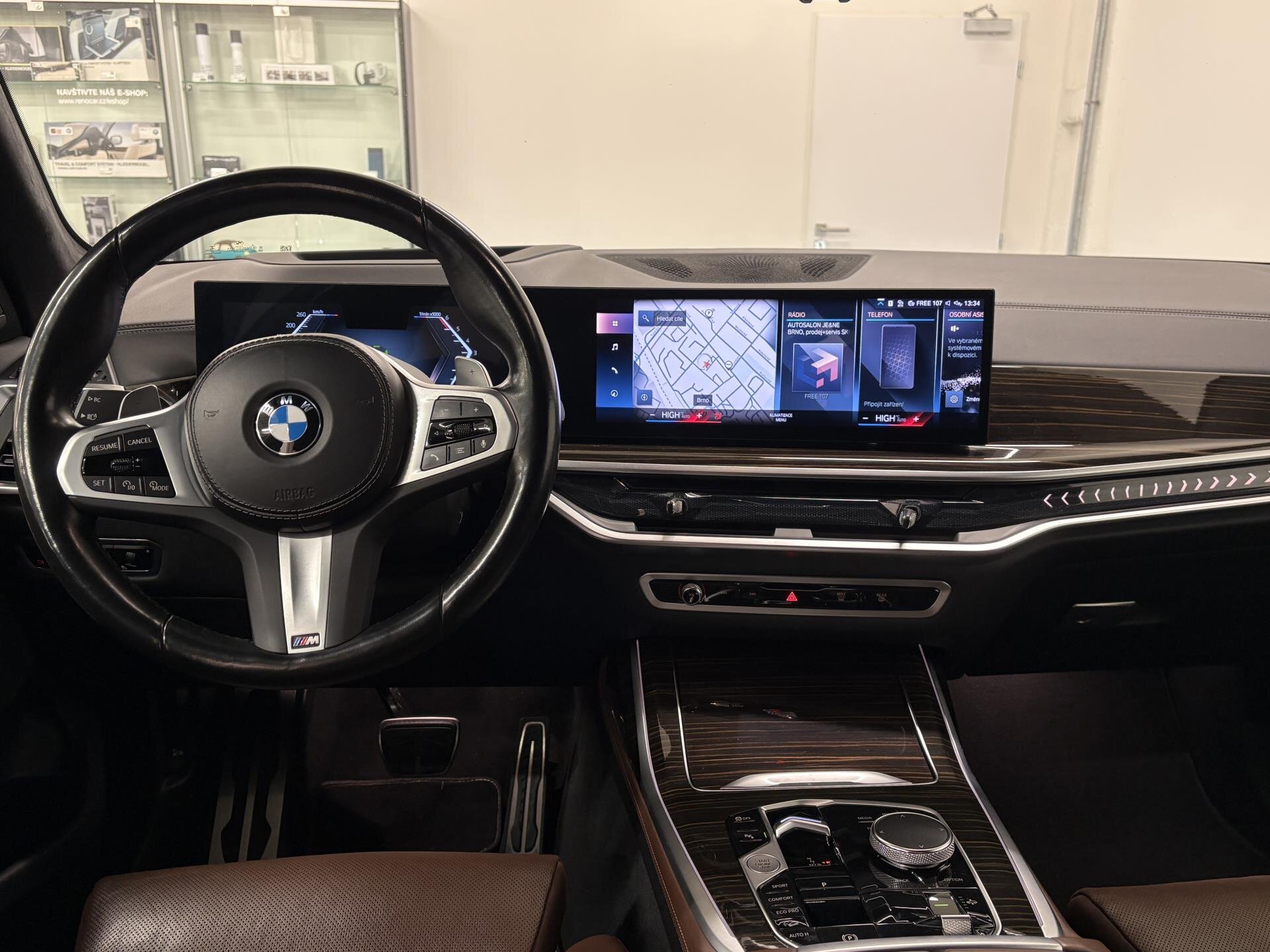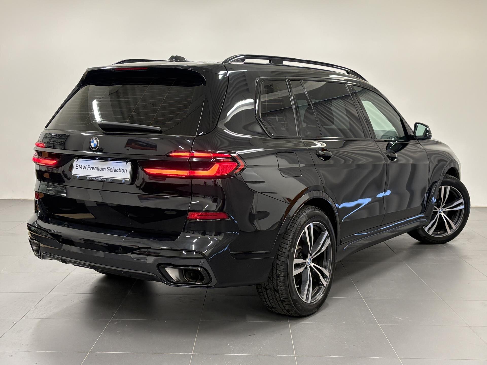 BMW X7 40d s M Sport paketem Pro. Sportovní automatická převodovka, integrální aktivní řízení a M sportovní výfuk. Černé M sportovní brzdy, M aerodynamický paket, Shadow Line doplňky a podsvícená maska BMW Iconic Glow. Komfortní sedadla s pamětí, klimatizací a vyhříváním vpředu i vzadu, měkké dovírání dveří, bezklíčový přístup a nezávislé topení. Asistenční systémy Driving Assistant Professional a Parking Assistant Professional. Digitální přístrojový štít BMW Live Cockpit Professional, head-unit s gesty, bezdrátové nabíjení a DAB+. Audiosystém Harman/Kardon, ambientní osvětlení, dekor Fineline Stripe, Alcantara strop a M volant. BMW Premium Selection 2 roky v ceně. Možnost financování, pojištění, protiúčtu za stávající vůz.