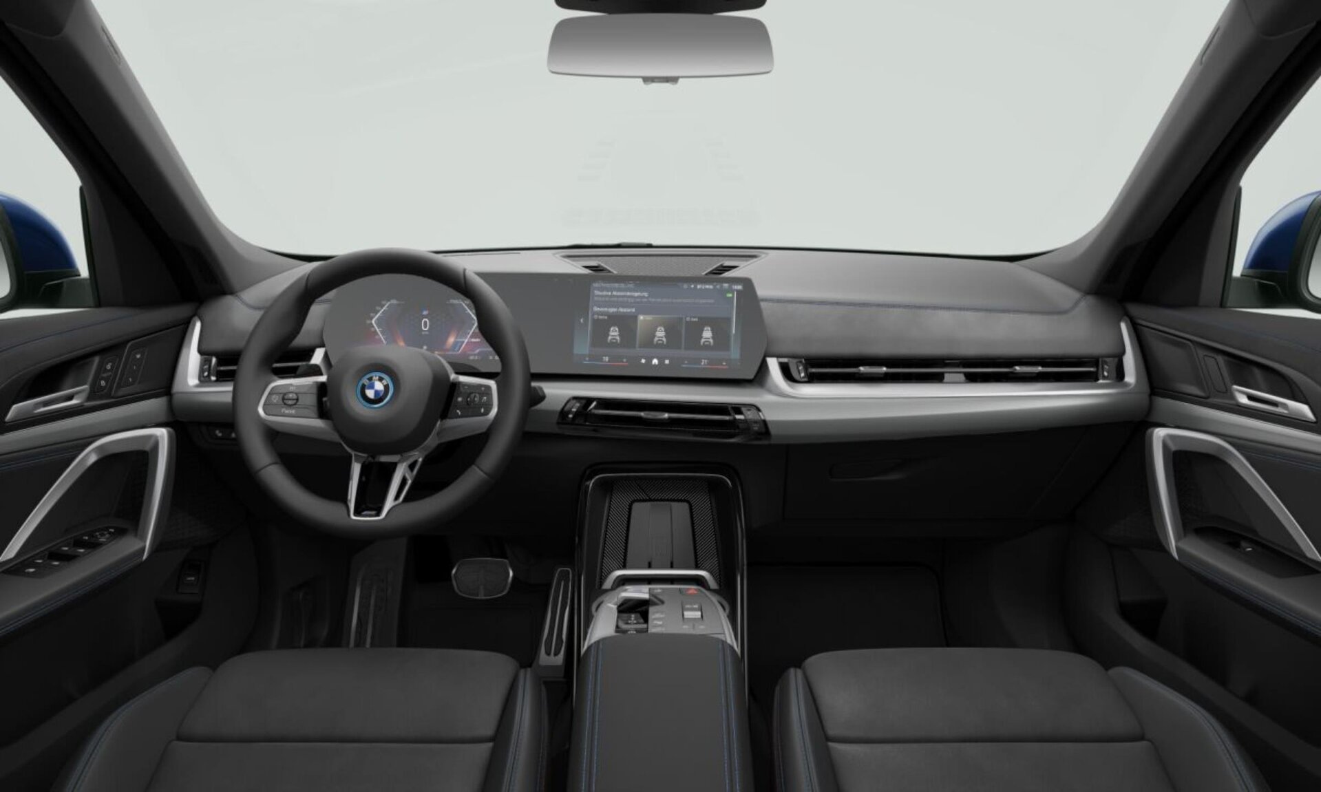 Čalounění | Kombinace umělá kůže Veganza/M Alcantara Black s modrým kontrastním prošitím |